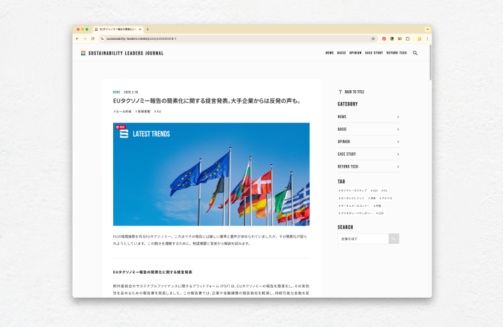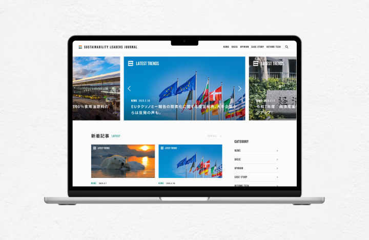 「地球と宇宙のサステナビリティを追求するビジネス・テクノロジーメディア「Sustainability Leaders Journal」の立ち上げにあたり、ロゴデザイン等のブランディング、Webデザイン、Studioでの実装など制作業務全般を担当しました。