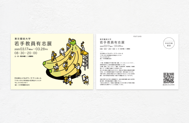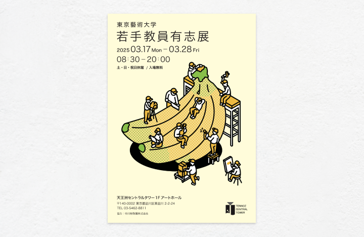 東京藝術大学若手教員有志展 東京藝術大学に所属する若手教員の有志展のメインビジュアル、DM等の広報制作を担当しました。ポスターは作品として展示も行っております。 制作年 2025.Mar Works一覧へ